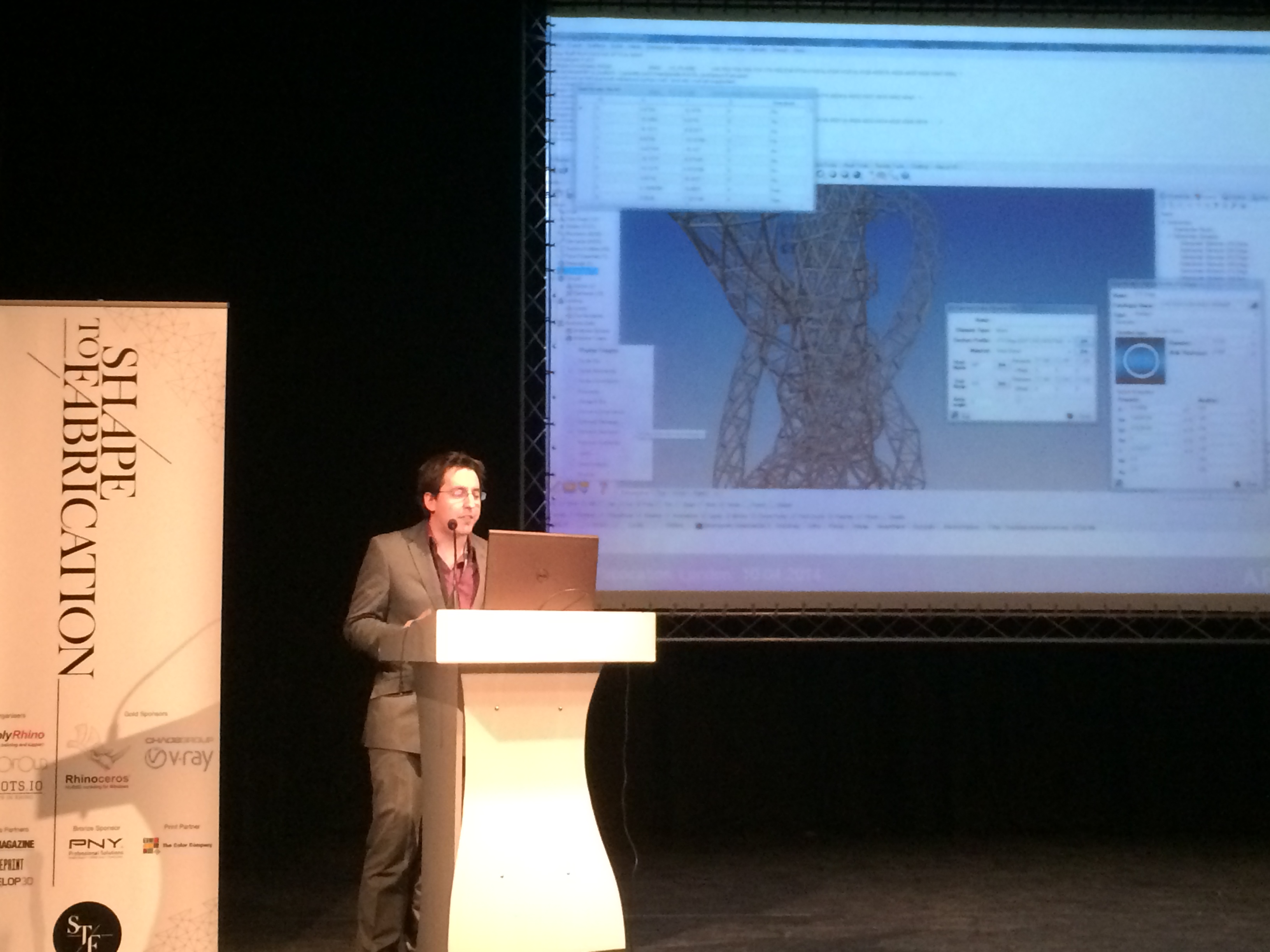 Last month I volunteered at the Shape to Fabrication conference in Stratford Circus, London. The event, organised by Simply Rhino and Robofold, focuses on cutting-edge technology, innovative construction and applications in architecture, engineering and design.